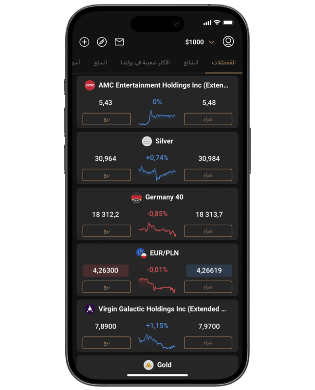 يمكنك الوصول إلى أكثر من 3000 سوق عالمي أثناء التنقل، بما في ذلك الأسهم والمؤشرات والعملات المشفّرة وأزواج العملات.