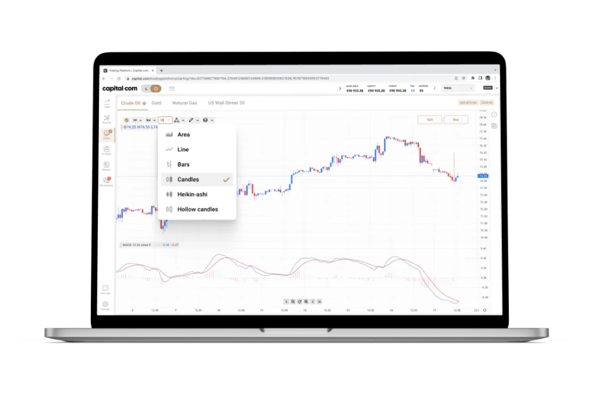 خصص المخططات البيانية لتناسب أسلوبك وخطط لتداولاتك باستخدام تنسيقات الشموع أو الأعمدة أو المناطق أو هيكين-أشي أو الخطوط. تنقل بسهولة بين المخططات البيانية المختلفة لضمان أفضل رؤية للسوق.