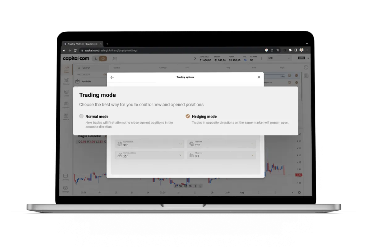 قم بموازنة التحركات السوقية المؤقتة السلبية في إحدى صفقاتك عن طريق فتح مركز معاكس في نفس السوق. يُرجى العلم أنه عند استخدام وضع التحوّط، ستضطر لدفع الفرق بين سعري العرض والطلب ورسوم التبييت على كلا المركزين.