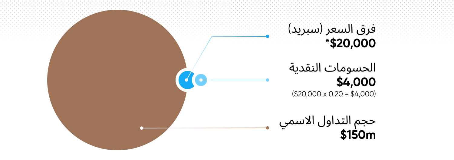 يُحتسب حجم التداول بناءً على القيمة السوقية الكاملة لصفقاتك (القيمة الاسمية)، وليس فقط على الهامش المستخدم لفتحها.