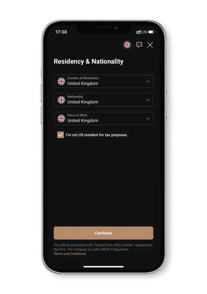 2. بمجرد فتح حسابك، ستحتاج إلى ملء بعض التفاصيل الشخصية الأساسية واختيار نوع الحساب وتحميل مستند إثبات هويتك.