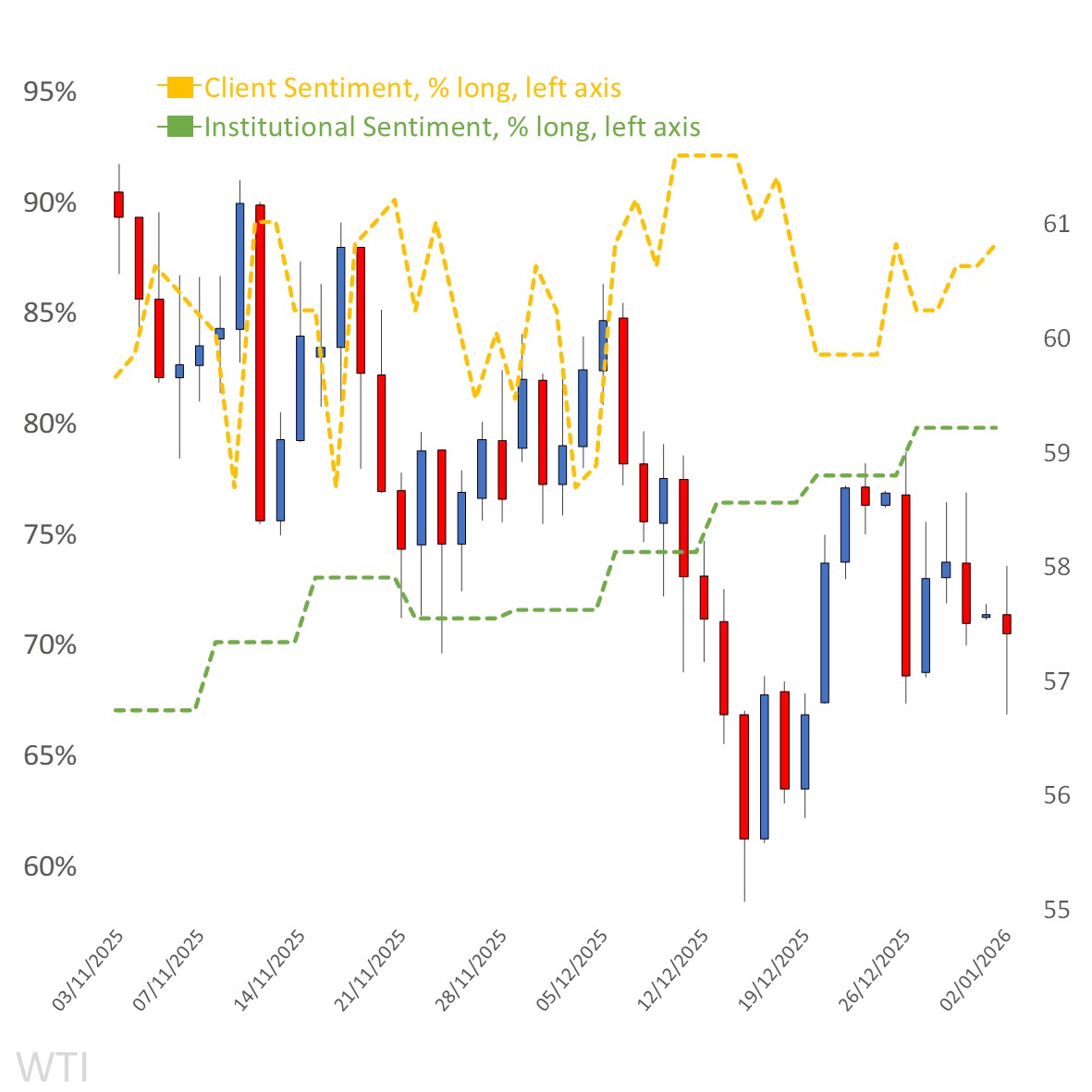 Die Bewegung ist relativ begrenzt angesichts der fundamentalen Entwicklungen, während die technische Tendenz weiterhin negativ bleibt und sowohl CoT-Spekulanten als auch Kunden im Sentiment extrem kauforientiert sind.