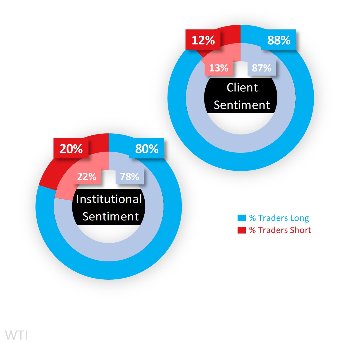 Betrachtet man die CoT-Spekulanten (Commitment of Traders) gemäß dem neuesten Bericht der CFTC, befinden sich diese ebenfalls im extrem kauforientierten Bereich und stiegen von 78% auf 80%, was ein langsamer und stetiger Anstieg der Netto-Long-Ausrichtung über die letzten Monate war, von moderater Long-Ausrichtung zu extremer Kauforientierung, die sich dem Prozentniveau der Privathändler nähert. Beachten Sie, dass CoT-Daten verzögert sind, was bedeutet, dass wir bis zum Bericht am Freitag warten müssen, um zu sehen, wie sie auf das jüngste geopolitische Ereignis reagiert haben.