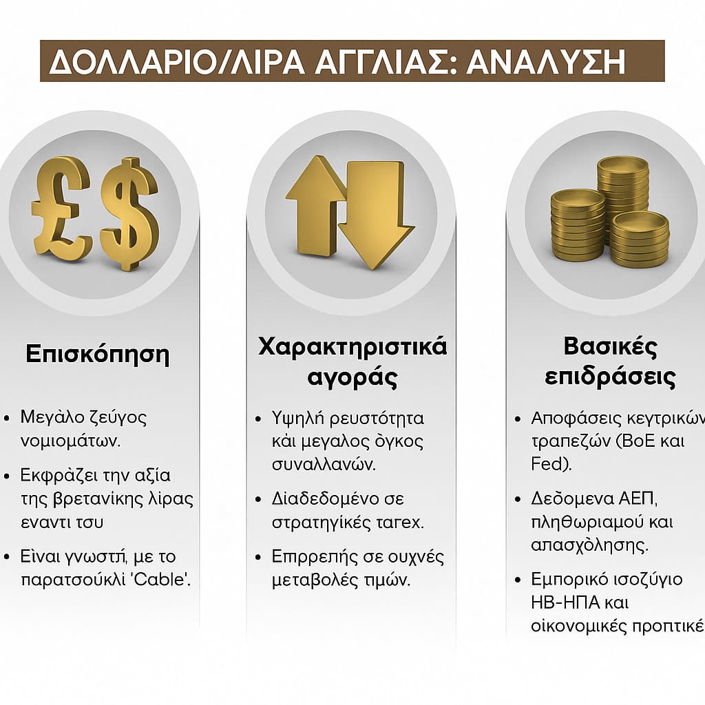 Τιμή GBP/USD κυμαίνεται συνεχώς, επηρεαζόμενη από παράγοντες που έχουν άμεση επίδραση στη συναλλαγματική ισοτιμία (USD προς GBP) και στη συναλλαγματική ισοτιμία του δολαρίου έναντι της λίρας, όπως η δημοσίευση οικονομικών στοιχείων, η νομισματική πολιτική και το κλίμα στις παγκόσμιες αγορές.