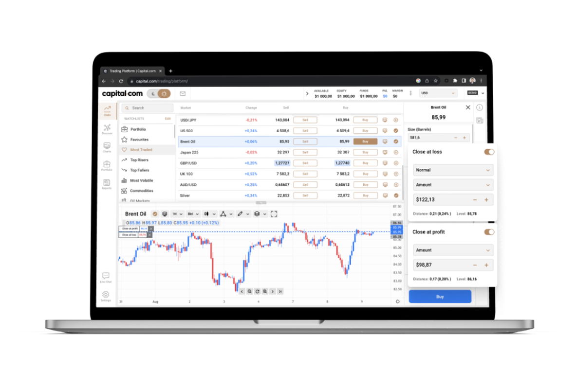 Πραγματοποιήστε διαπραγματεύσεις CFDs με την Capital.com απευθείας μέσω των παγκοσμίου φήμης διαγραμμάτων της TradingView.
