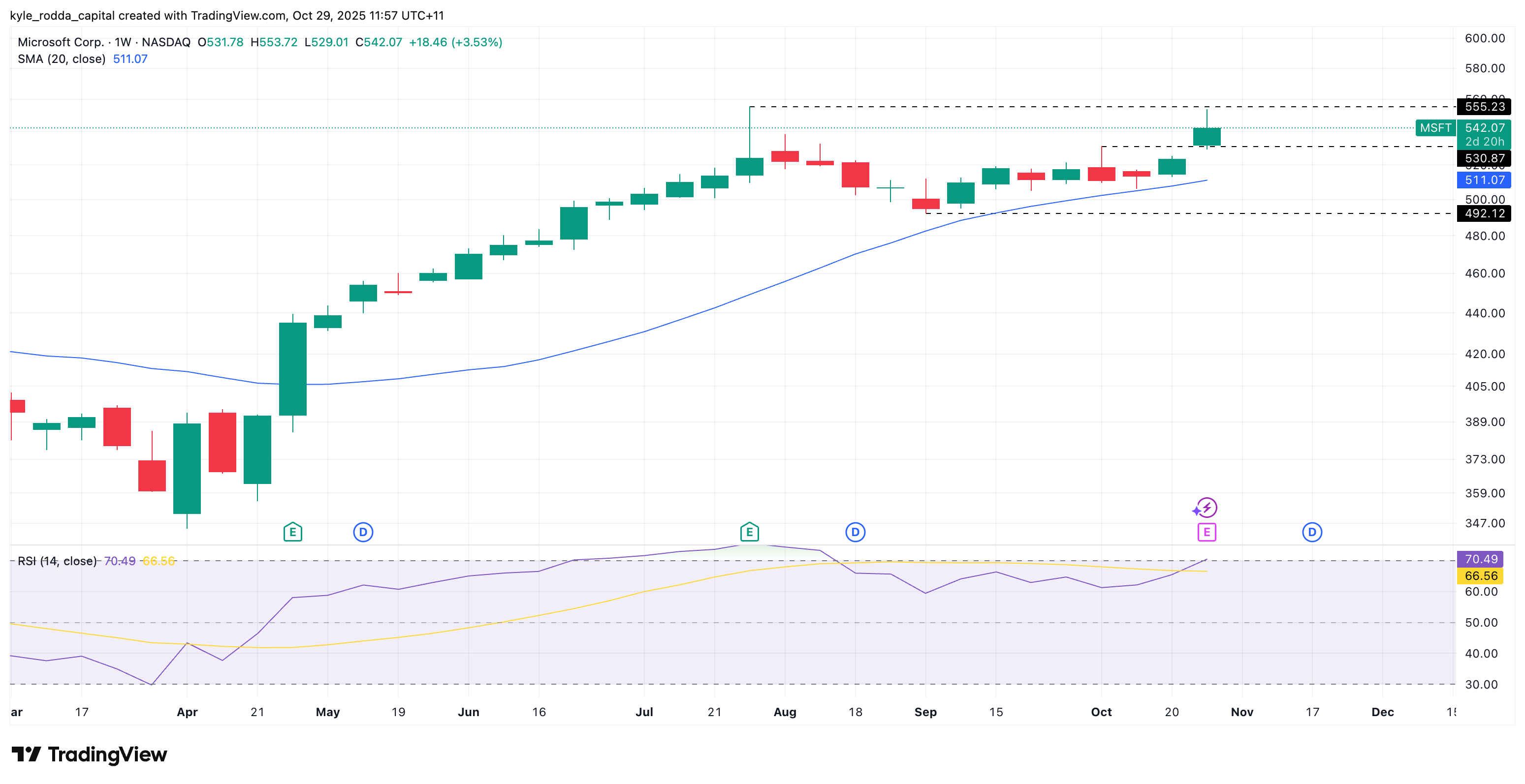 Microsoft’s fiscal Q1 2026 results are expected to underscore its continued leadership in enterprise cloud and AI infrastructure. Consensus estimates call for adjusted EPS of $3.68 on revenue of $75.55 billion, reflecting modest quarter-on-quarter growth. Revenue expansion remains anchored in Azure and Office 365, both benefiting from strong adoption of AI-enhanced services. However, growth is being tempered by a slowdown in traditional software licensing and foreign-exchange headwinds. Microsoft’s margins are steady, supported by subscription pricing power, though record capital expenditure—over $44 billion last quarter—signals sustained investment in data-centre expansion. Looking ahead, the key growth driver remains enterprise AI demand and integration across the Microsoft ecosystem, from Copilot tools to cloud infrastructure, positioning the firm to capture productivity-driven spending in 2026.