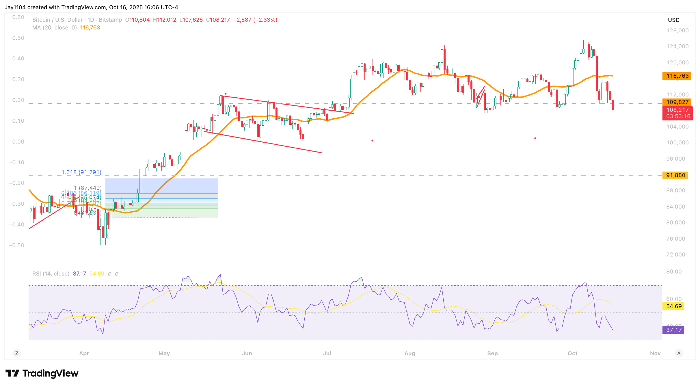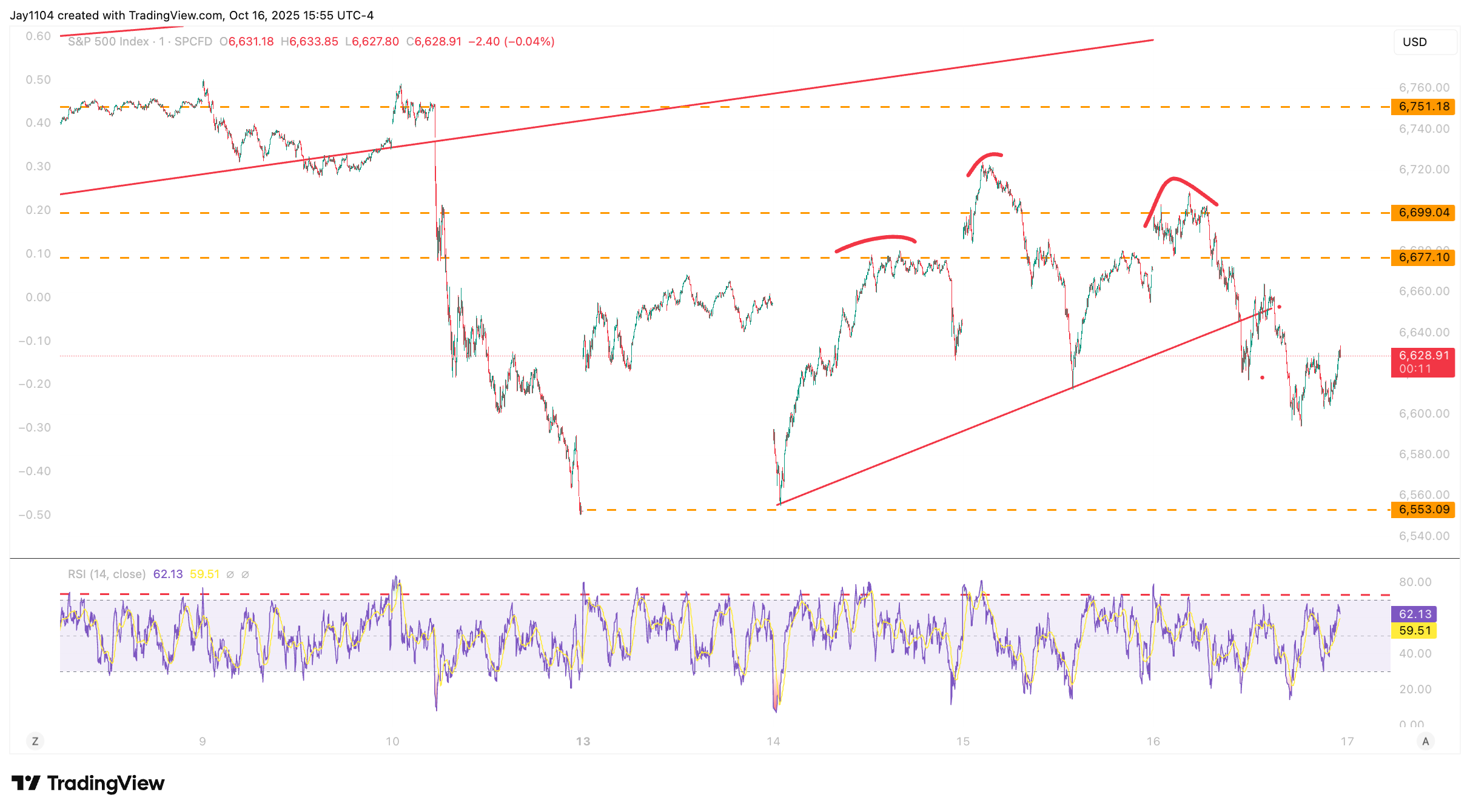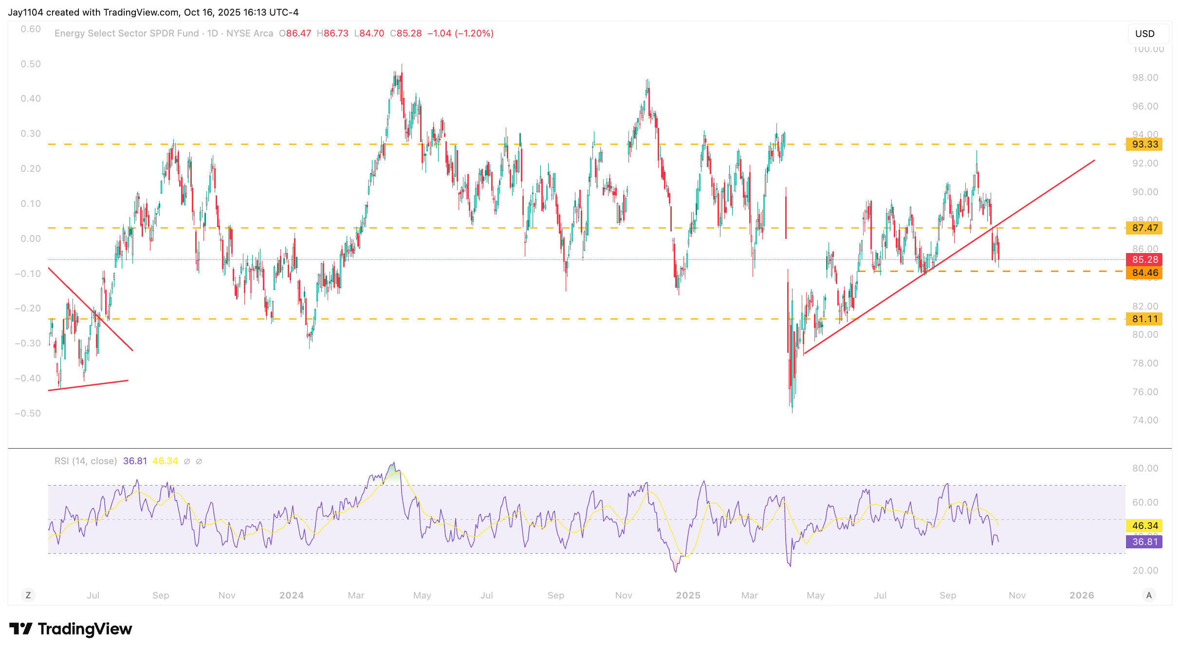 The S&P 500 fell by around 60 basis points on Thursday, 17 October. The market appears to be experiencing a significant drain in liquidity, as the overnight Secured Overnight Financing Rate surged to 4.29% — a sign that liquidity conditions are tightening and may be weighing on assets such as stocks as well as Bitcoin. Regional banks also continued to come under tremendous pressure as credit concerns mounted.