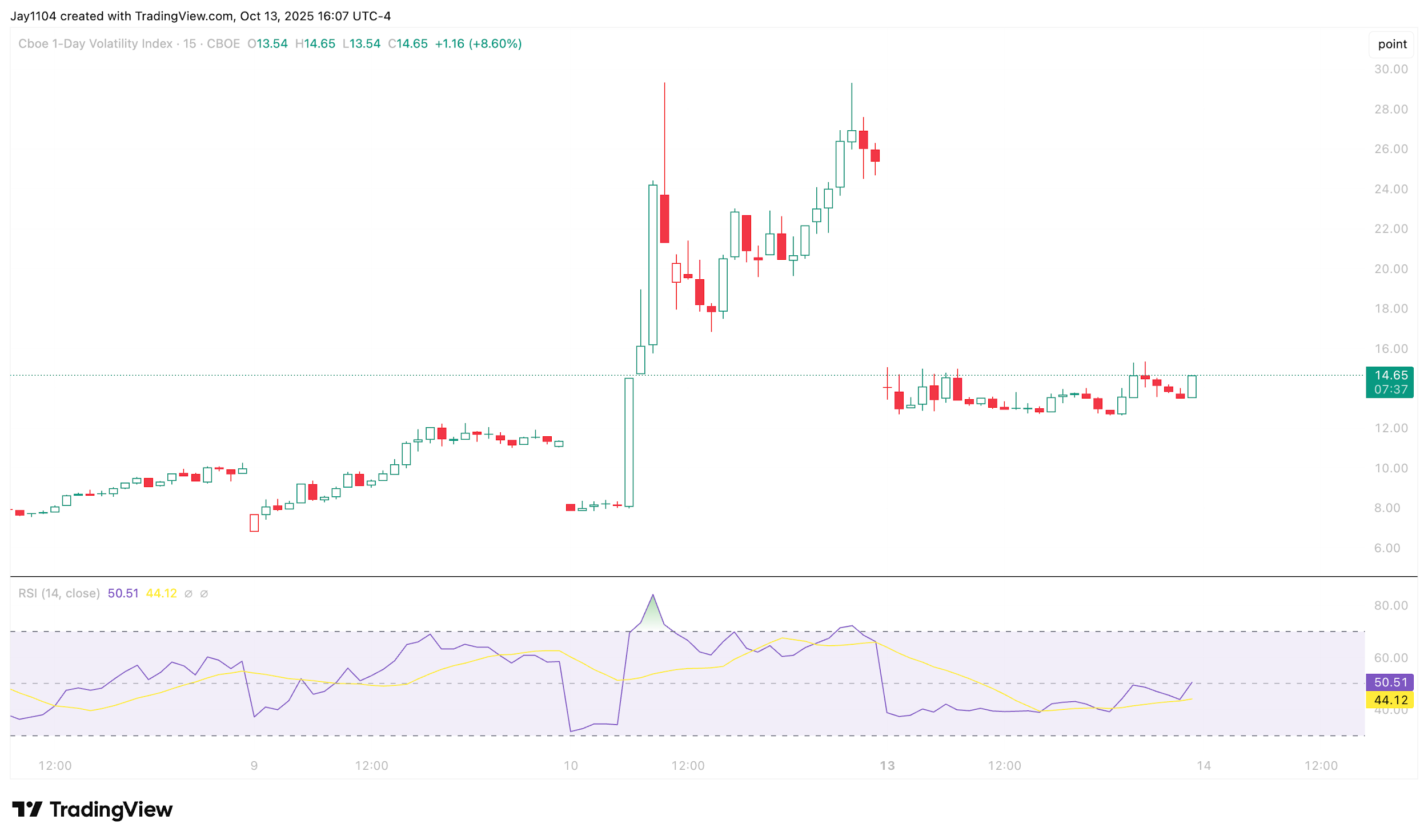 The S&P 500 finished on 13 October higher by about 1.5%. For the most part, the rally appeared to be driven by implied volatility and options positioning.