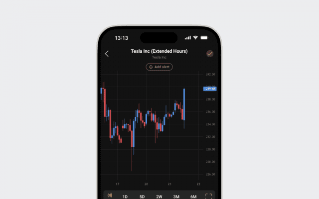 Our charts come directly from leading provider TradingView, with six chart types and 75+ indicators.