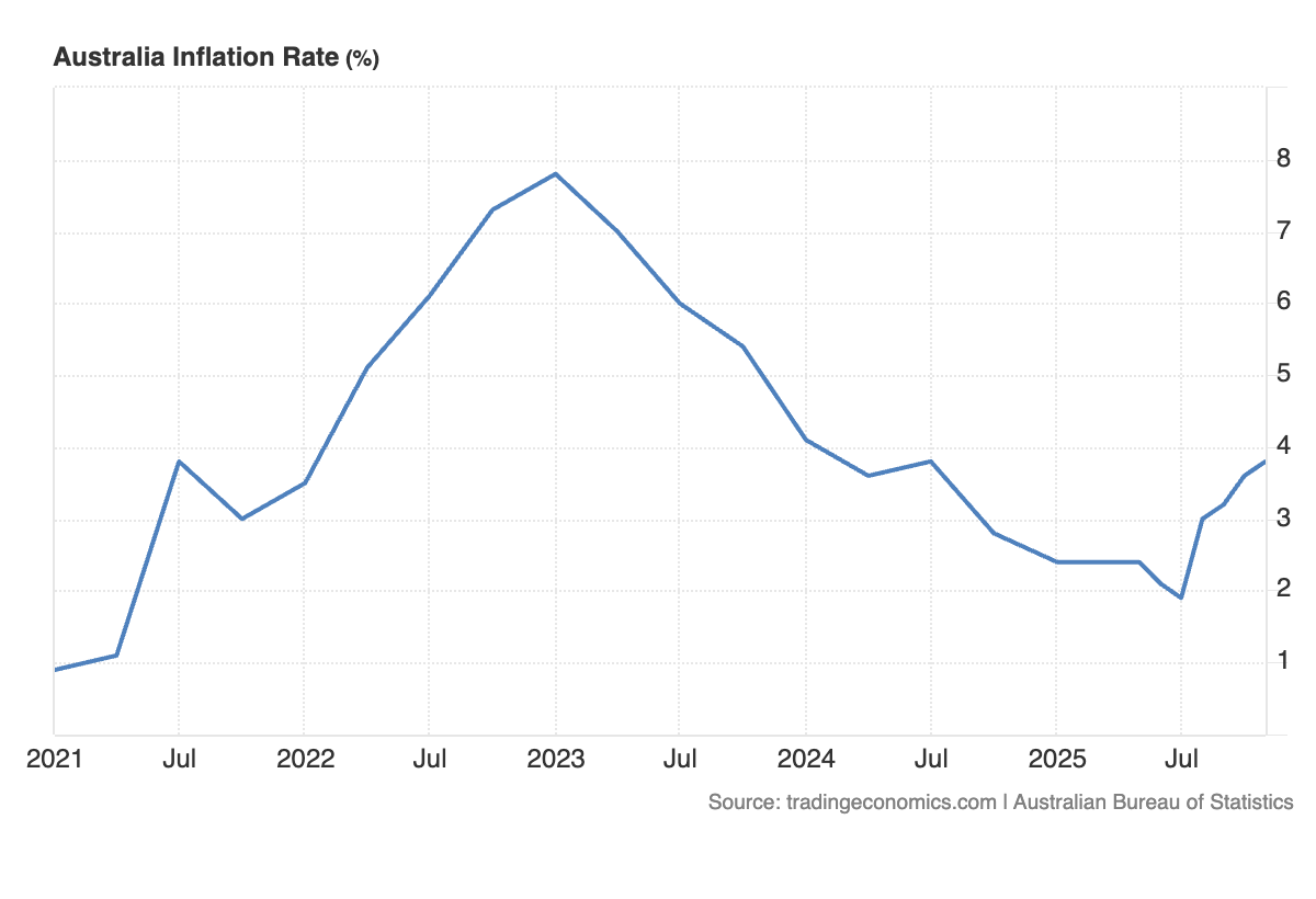 The GDP release arrives at a time when inflation momentum is turning higher again. The September-quarter CPI print surprised to the upside, and the latest monthly indicator rose to 3.8%, pushing inflation back above the RBA’s 2–3% target band. Price pressures remain concentrated in services, where demand is still firm, while housing-related inflation continues to be driven by strong population growth and ongoing constraints on supply.