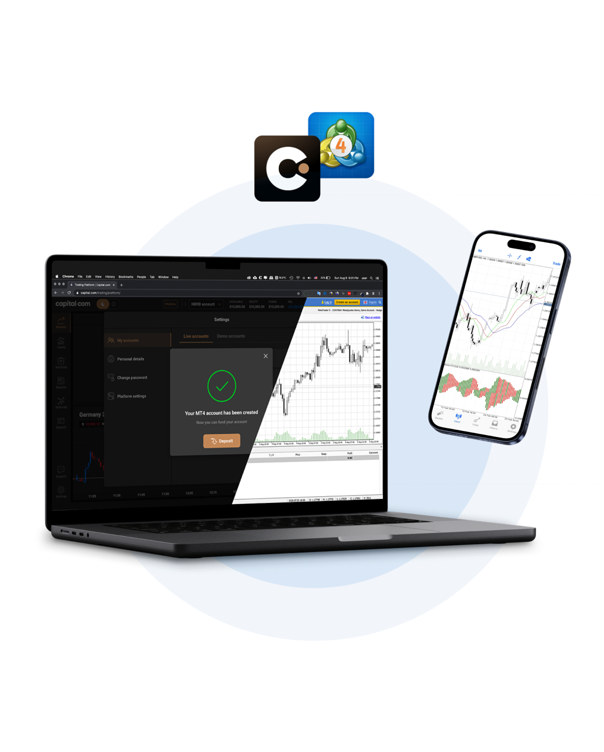 Any regulated broker that offers the MT4 software can be considered an MT4 broker – such as Capital.com! When you trade with us, you speculate on the price of underlying assets with CFDs, rather than owning them. This lets you take a position on rising and falling markets. CFDs are traded on margin, leverage can amplify both gains and losses.