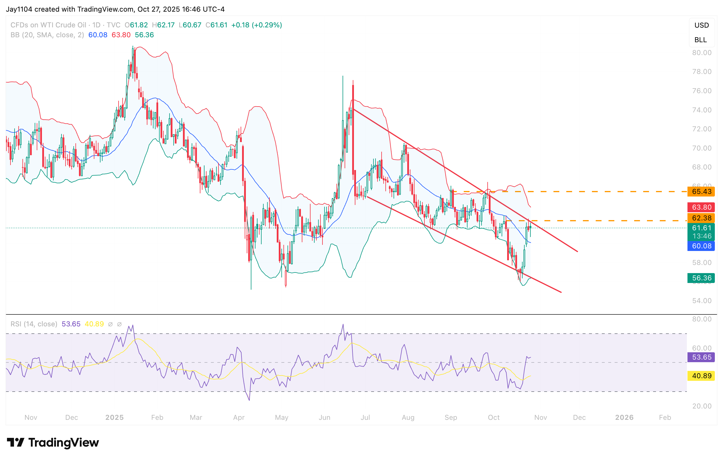 However, if prices fail to push beyond $62.50, a retracement back towards the recent lows near $56 becomes likely. That said, momentum indicators on the RSI suggest there is a strong chance oil may first advance to $65.50 before any potential pullback.