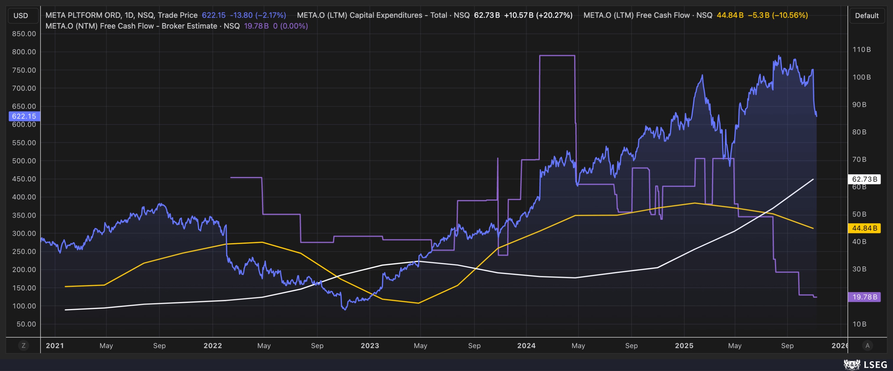 Since reporting results, the AI names have been battered amid fears of out-of-control capital expenditure and the damage this is likely to inflict on free cash flow. Meta and Oracle stand out as the poster children for this, with not only equity investors taking notice but, in Oracle’s case, credit investors as well.
