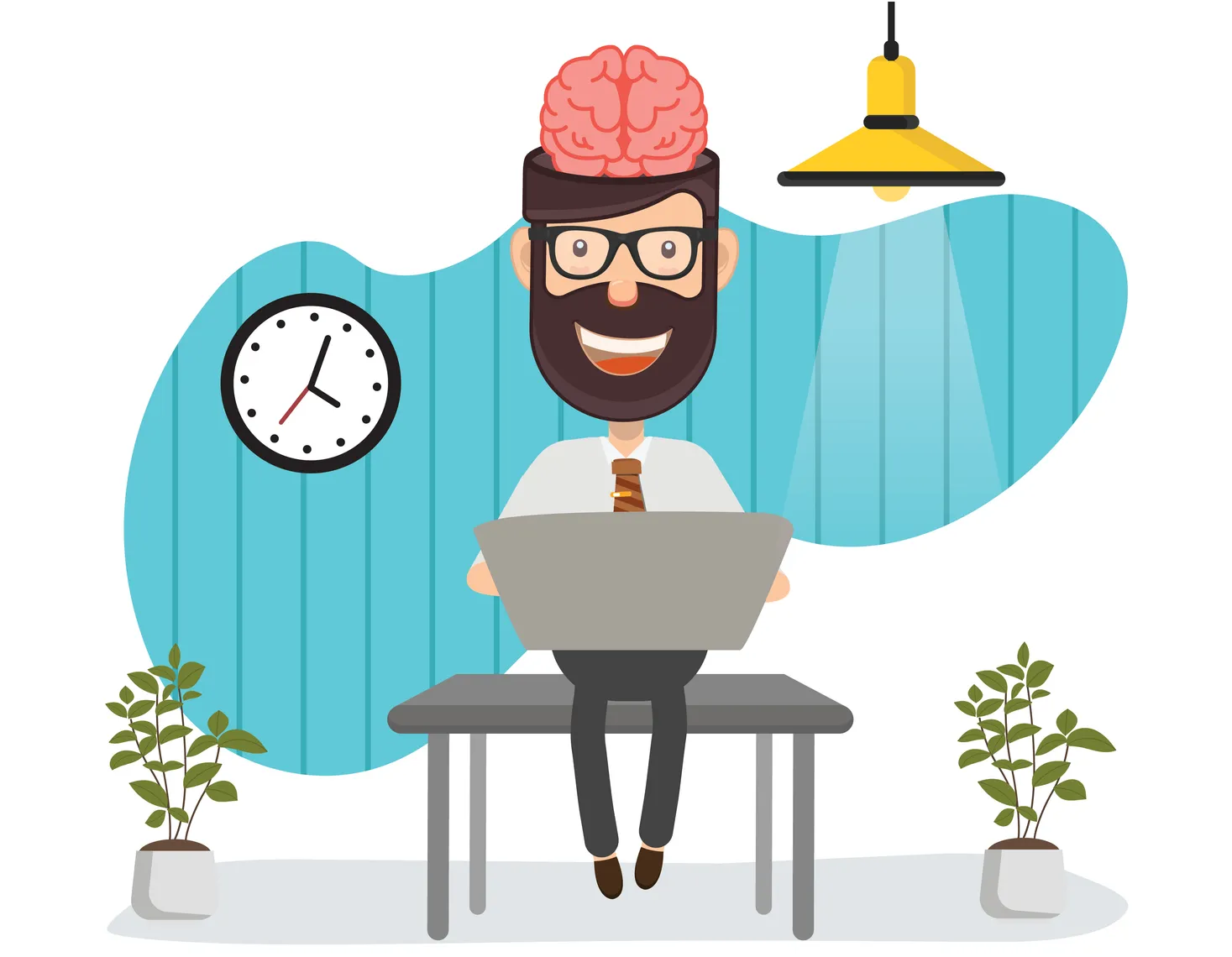 Green Tech definiton A man is sitting on a table on the sides of a potted plant