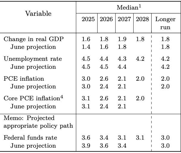 Summary of Economic Projections from the September 2025 meeting