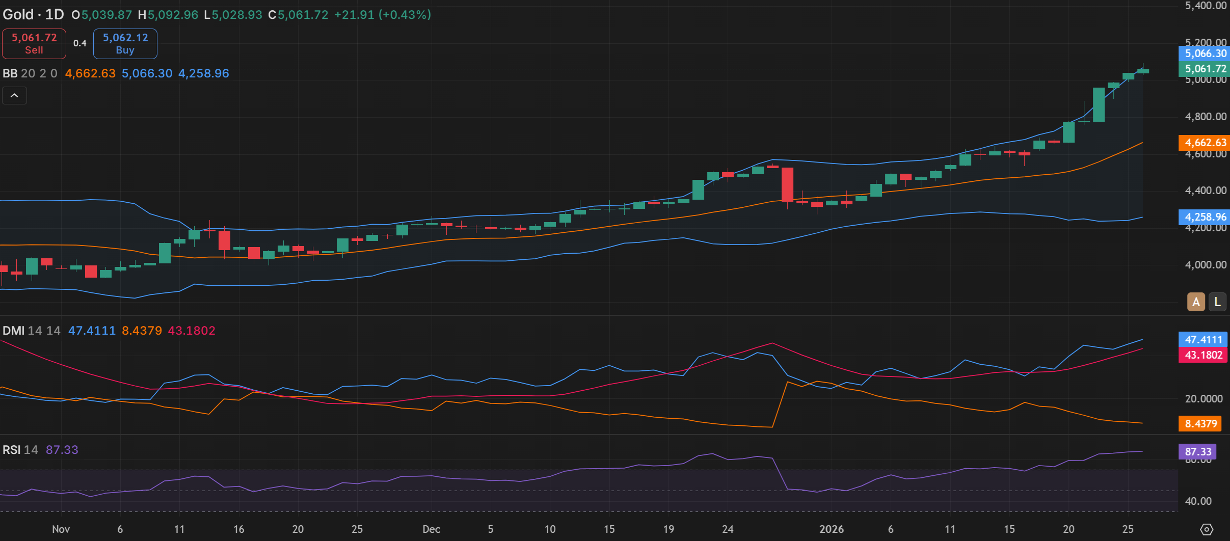 It’s a gold morning as the precious metal breaks through the historic and noteworthy $5,000 level for the very first time, gapping higher and intraday wasn’t too far off $5.1K at one point. Investors have been flocking to safety, price targets for the end of this year have been raised from a few key financial institutions, trust is in doubt on the geopolitical scene even between allies, tensions are failing to subside, and on the trade front a fresh tariff threat was revealed, this time against Canada at 100% for its imports into the U.S. over a possible deal with China. Add to it the potential intervention on the FX front to aid the yen sending the U.S. Dollar Index into the 96s for the first time since September, and those priced against the dollar are generally having a strong start to the week.