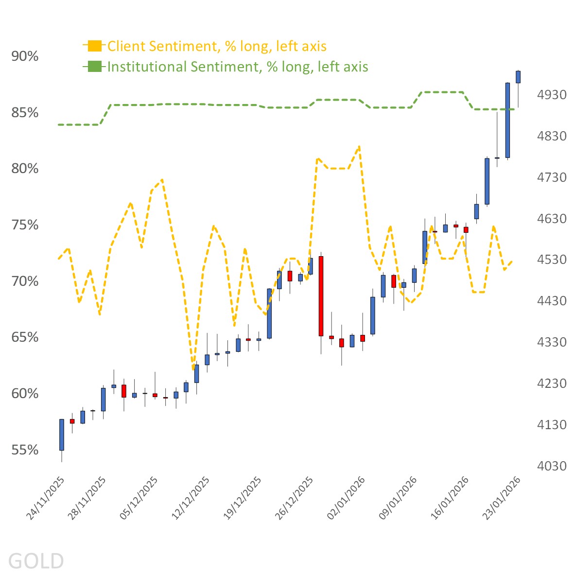 It remains a story of majority buy sentiment among traders, and clients started off this week at a heavy long 72% before latching onto the early price gains taking it as high as 78% following the move to a fresh record high, in all a story of fresh longs entering, closing out, and then looking to re-enter again.