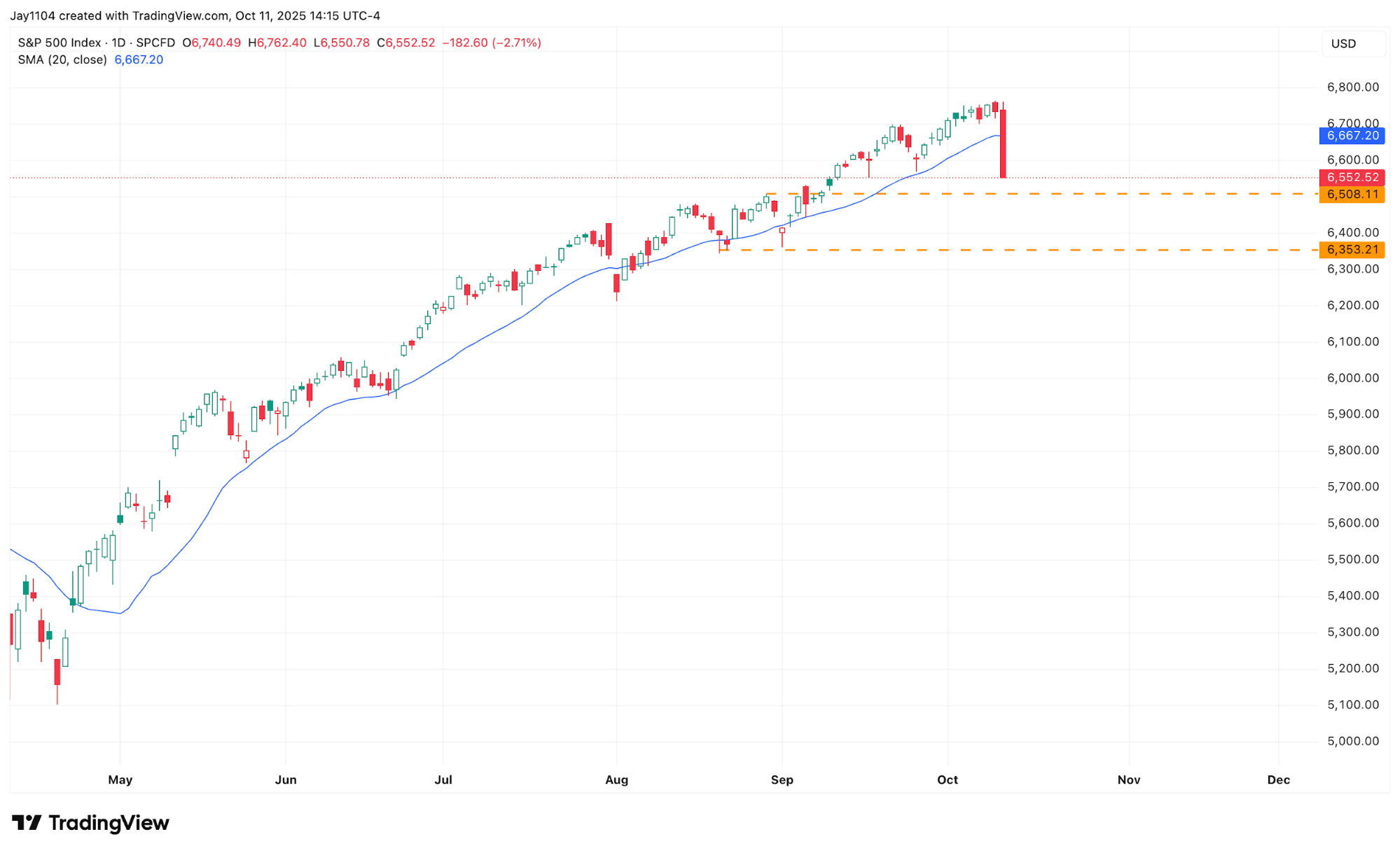 The S&P 500 fell by more than 2.7% on Friday following rising trade tensions between the US and China. This resulted in the index breaking several technical indicators during the decline, including a drop below the 20-day moving average.
