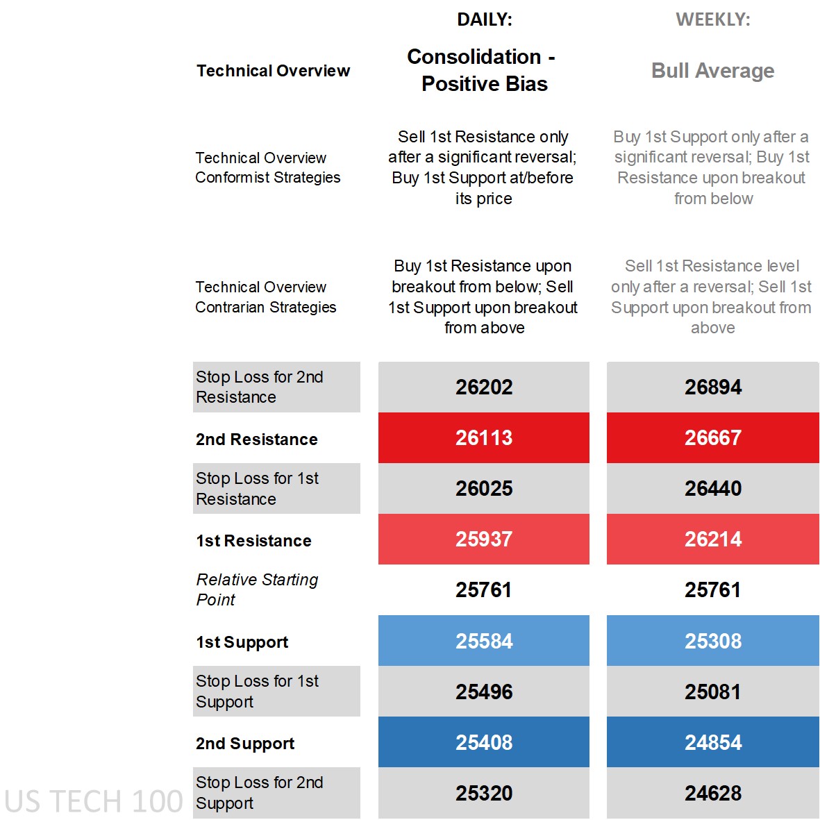 It’ll take more to reach the weekly levels given they are larger, and with a ‘bull average’ overview means conformist will be more cautious with a buy only after a significant reversal waiting for price to go beneath the 1st Support level by a significant amount before initiating only if it manages to recover to the key level, and for a breakout off the 1st Resistance. Those who see this as the start of a larger pullback are armed with contrarian strategies, via reversal off the weekly 1st Resistance and via breakout off the 1st Support.