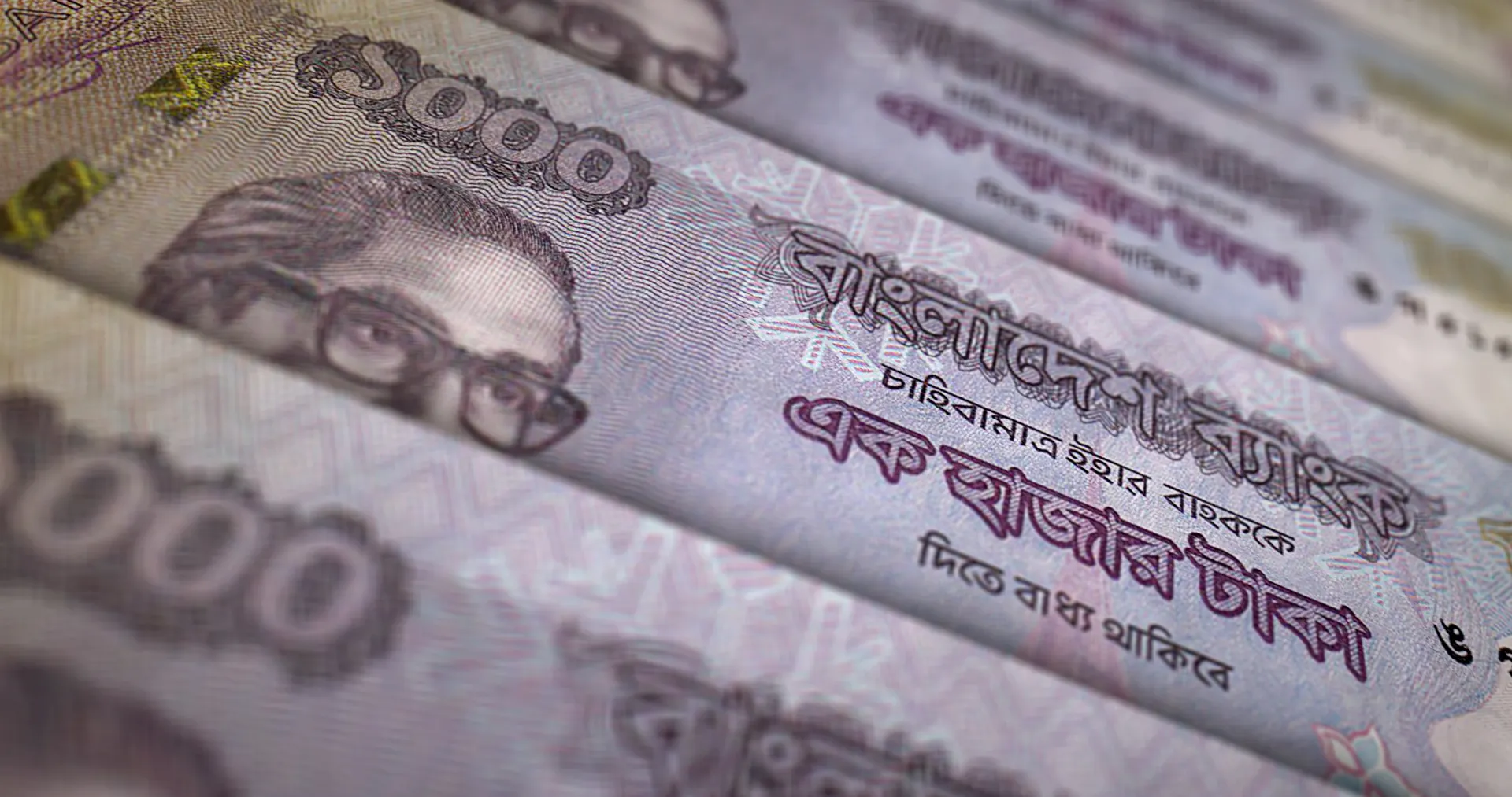 Bangladeshi taka notes in a row