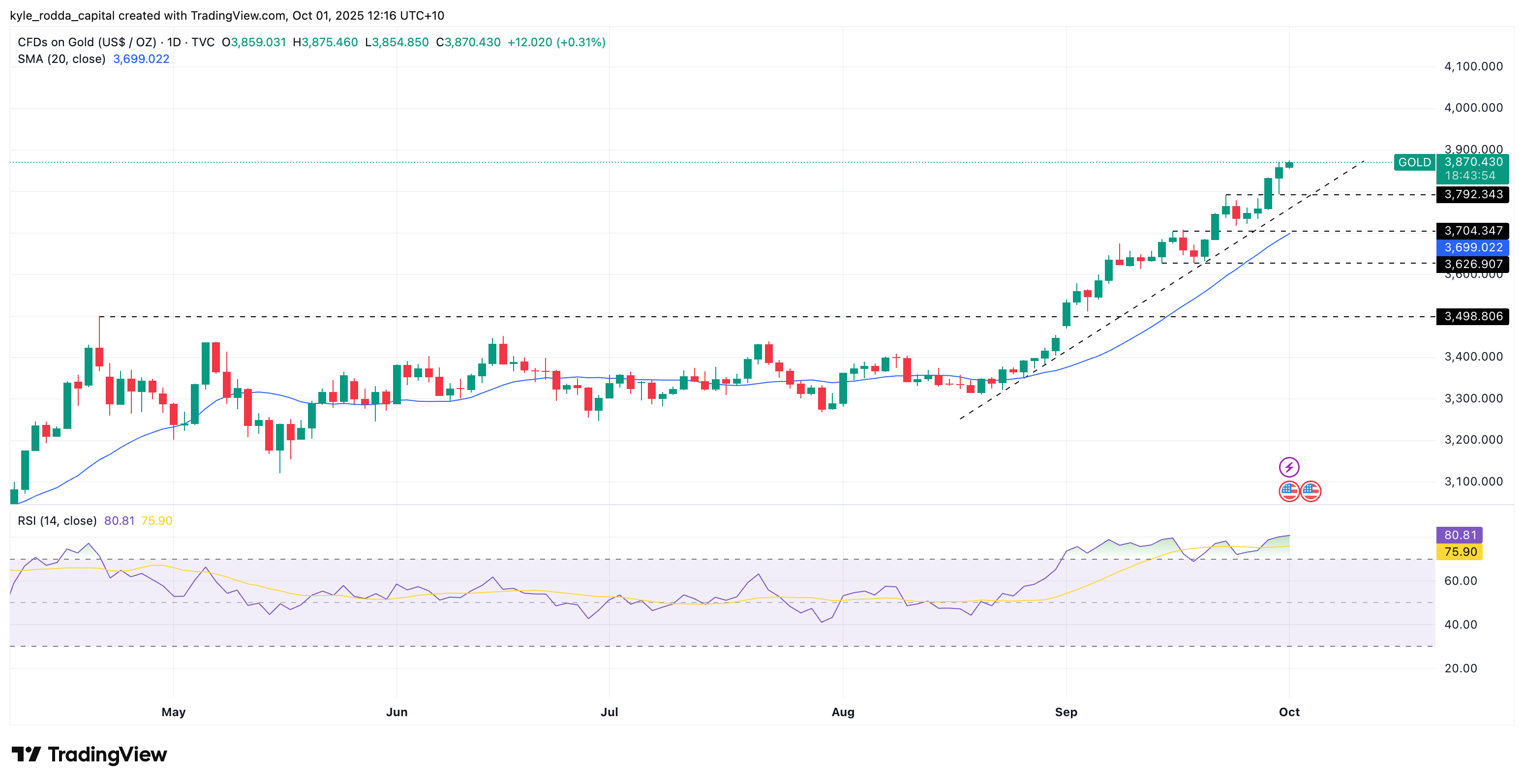 Currently, the markets aren’t ascribing a high chance of such an outcome. However, if it materialises, it could impact rate expectations. Government shutdowns have led to a marginally weaker US Dollar and lower yields in the past. A genuine growth shock, even if relatively small, could add pressure on an already frail labour market. The dynamic would likely weaken the US Dollar further. That may support gold’s appeal, which has broken to record highs courtesy of rate cut expectations.