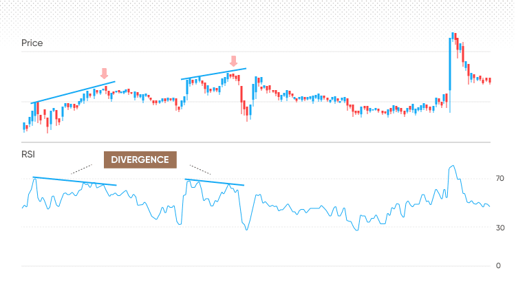 RSI can also highlight potential reversals through a pattern known as divergence, where price moves in one direction but RSI moves in the other. This may suggest fading momentum and can precede possible trend shifts – though confirmation from other indicators is generally recommended.
