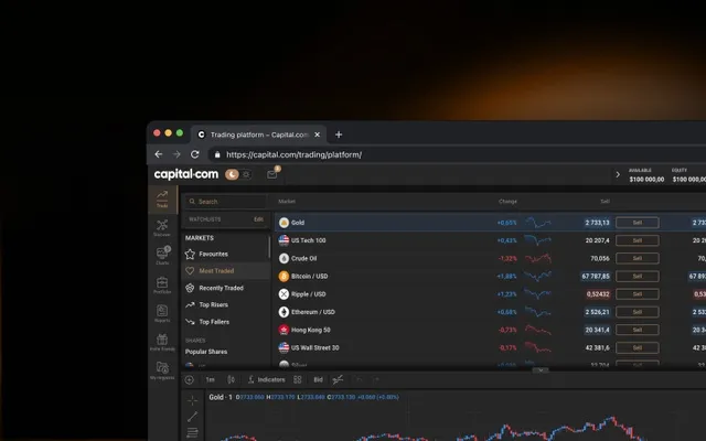 Take a position on instruments linked to global interest rate changes with CFD trading. Explore all markets, from indices and commodities to bonds and more – directly in the Capital.com web platform or app.