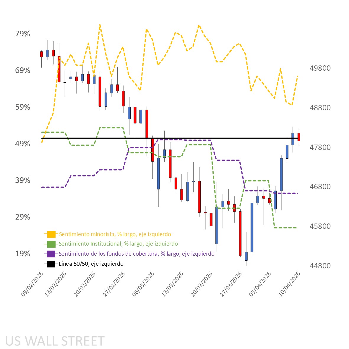 Según el último informe COT, los grandes especuladores se encuentran en posición neta vendedora, la cual aumentó considerablemente del 62% al 74%, rozando territorio de cortos extremos, como resultado de una reducción en las posiciones largas (1.815 lotes) y un incremento simultáneo en las posiciones cortas (3.653 lotes).