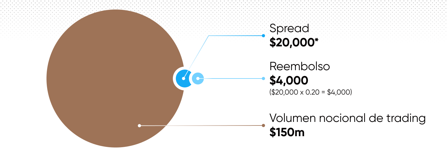 Reembolso por spread = tasa de reembolso (%) × spread pagado.