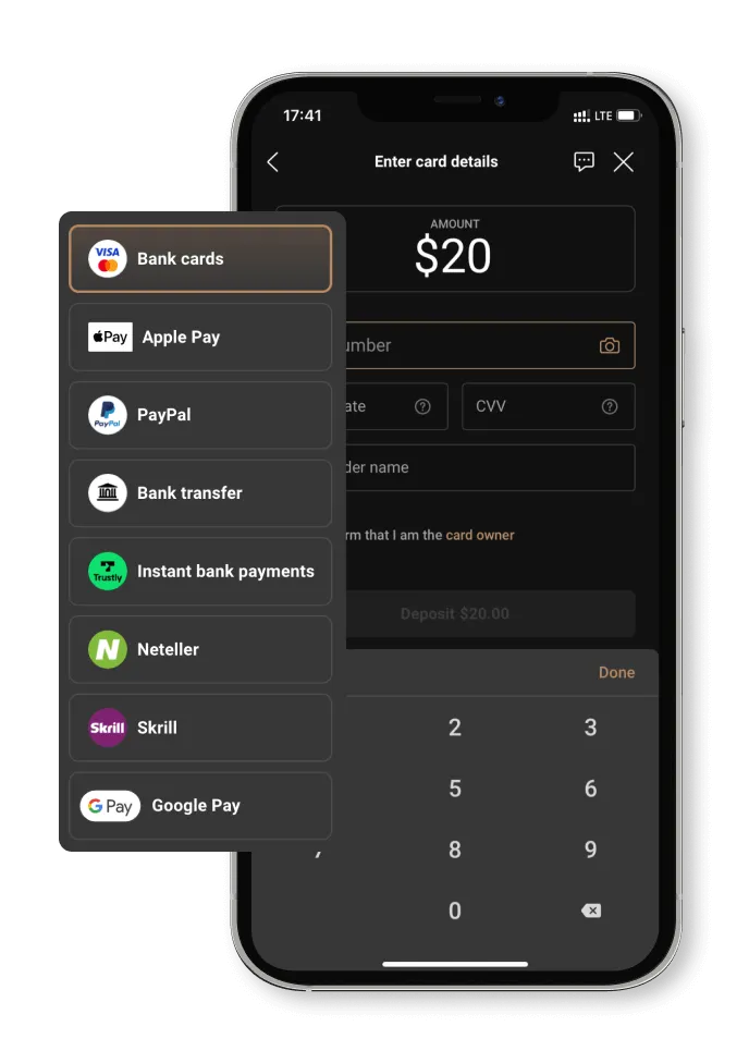 3. Empieza con solo 20 $. Puedes depositar en tu cuenta de Capital.com utilizando cualquiera de los métodos que se indican a continuación.