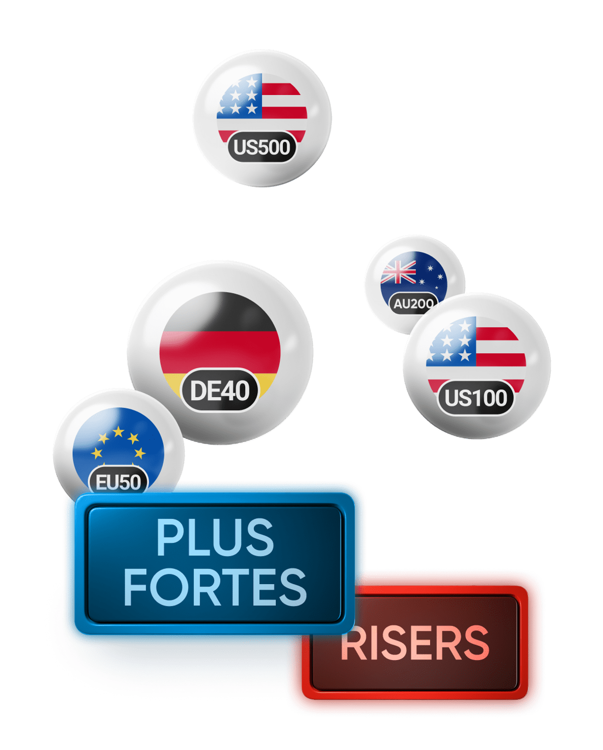 Découvrez quels marchés d’indices ont le plus grimpé aujourd’hui. Avec nous, vous pouvez trader un large choix d’indices populaires comme l’US Tech 100, le UK 100 et le DAX 40 en utilisant les CFD ou le spread betting.