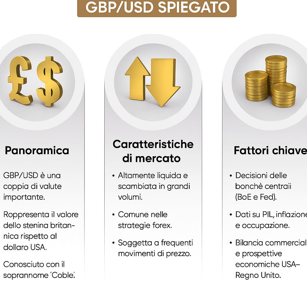 Cos'è GBP/USD (coppia sterlina britannica - dollaro statunitense) e come ci si fa trading?