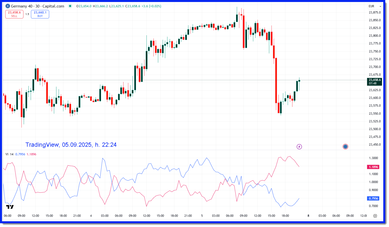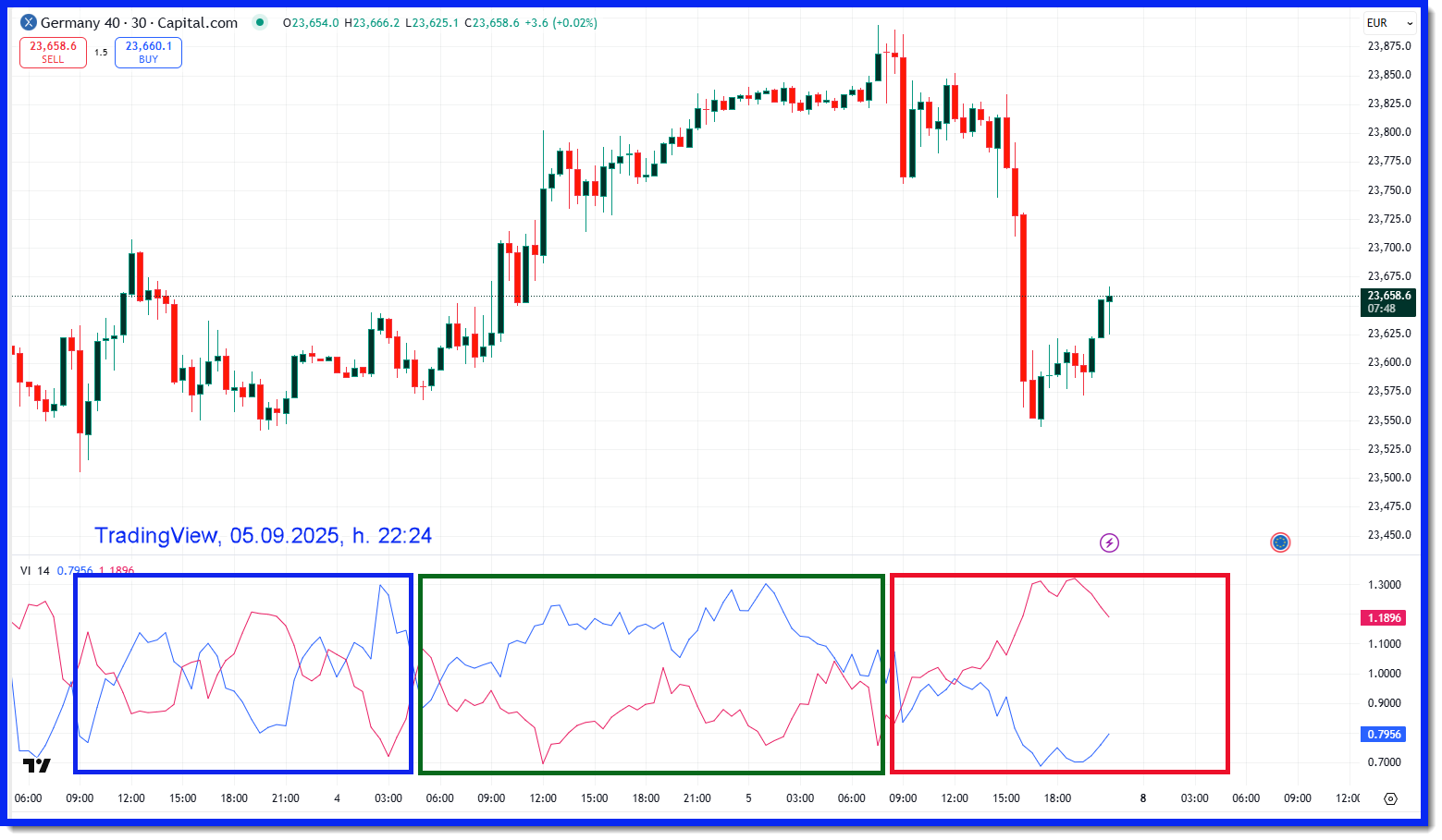Figura 2. Vortex Indicator sul Dax40 time frame 30 minuti