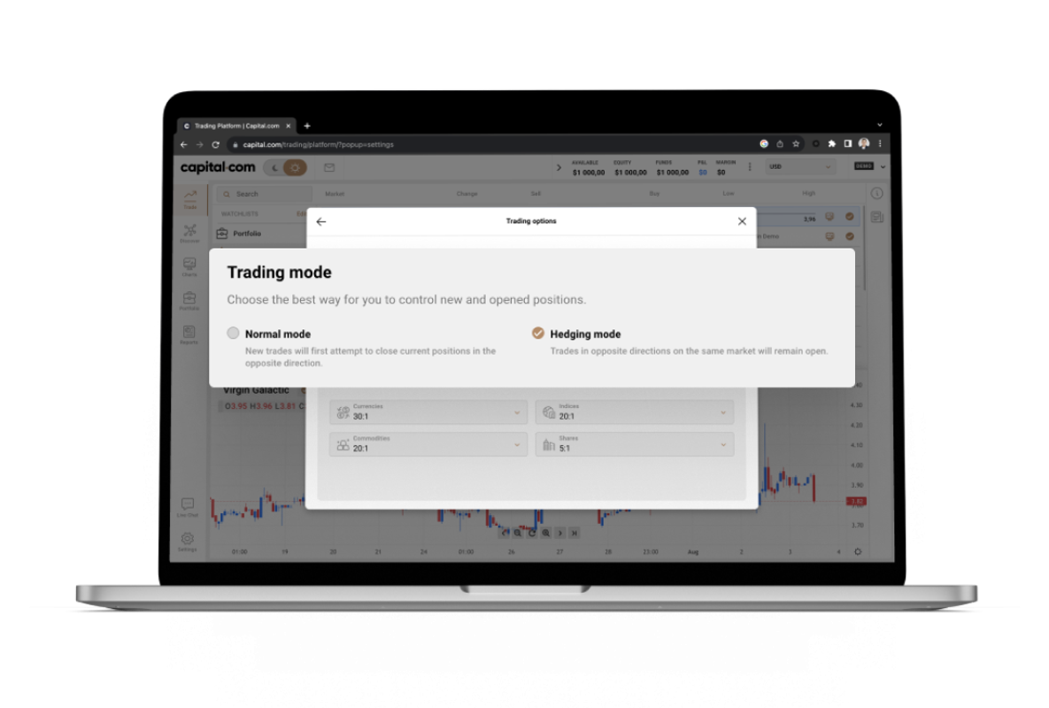 Zniweluj wpływ tymczasowo niekorzystnych zmian ceny, otwierając pozycję w przeciwnym kierunku na tym samym rynku. Pamiętaj, że stosując tryb zabezpieczenia (hedging), musisz zapłacić spread kupna-sprzedaży i opłatę overnight za obie pozycje.