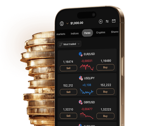 Zajmij długą lub krótką pozycję na wielu głównych parach walutowych, w tym EUR/USD, GBP/USD, USD/JPY i innych, korzystając z kontraktów CFD na intuicyjnej platformie zaufanej przez 845 000+ traderów na całym świecie.