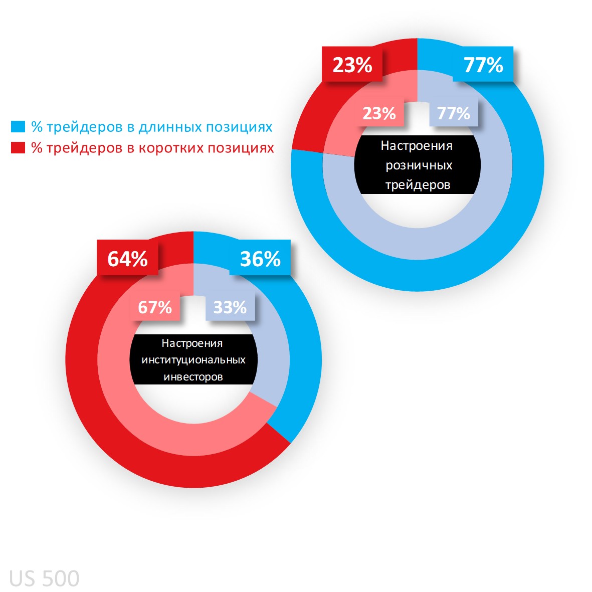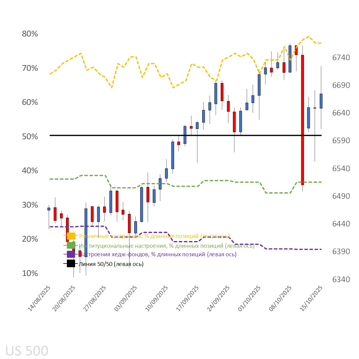 Аналогичная тенденция наблюдается в Dow (73%), Nasdaq (64%) и Russell (66%), хотя в S&P 500 доля покупателей остаётся самой высокой.