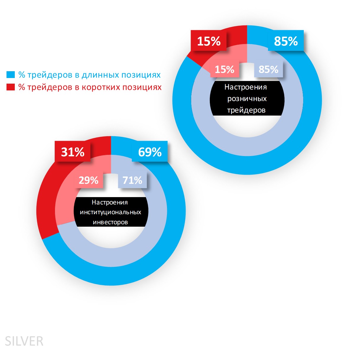 Спекулянты по отчету CoT по-прежнему находятся в чистых длинных позициях и в зоне активных покупок, однако они немного сократили бычий уклон из-за большего увеличения коротких позиций (+2 021 контракт) по сравнению с длинными (+510). Чистая длинная позиция по золоту также сократилась, но лишь незначительно, вследствие гораздо большего сокращения длинных позиций (-43 672) по сравнению с короткими (-4 298). Стоит учитывать, что значительная часть длинных позиций была открыта на гораздо более низких уровнях, поэтому, хотя коррекция для них неблагоприятна, у них все еще остается запас, позволяющий зафиксировать прибыль в чистом выражении.
