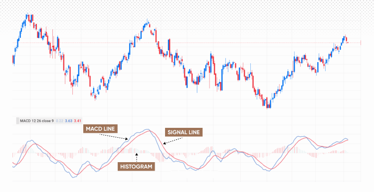The indicator gives bullish and bearish signals. A bullish signal occurs when the MACD line crosses above the signal line. This suggests that momentum is increasing in the upward direction. A bearish signal happens when the MACD line crosses below the signal line. This suggests that downward momentum is rising.